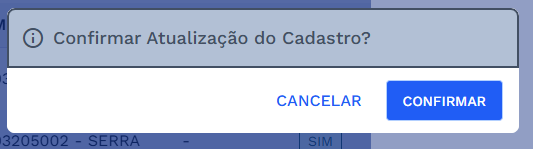 O sistema apresentará uma caixa de diálogo solicitando a confirmação. Clique em CONFIRMAR para finalizar o processo. Caso deseje cancelar o processo e retornar à tela anterior, clique em CANCELAR.