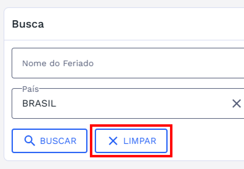 Para acessar os feriados cadastrados e executar as ações disponíveis, é necessário realizar uma busca utilizando os filtros da área de pesquisa.